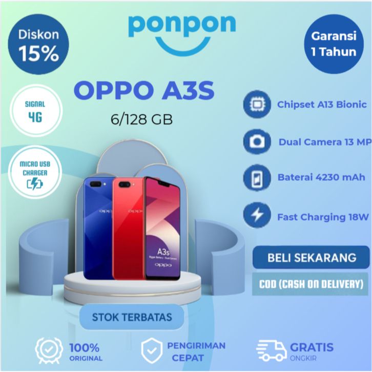 A3S RAM 6/128GB 4G FULLSET GARANSI 1 TAHUN GROSIR MURAH