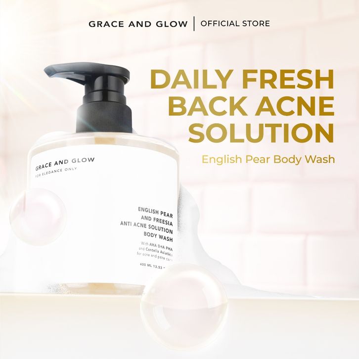 Grace and Glow English Pear and Freesia Anti Acne Body Wash | Shower Gel | - Sabun Mandi untuk Mengurang JerawatPunggung