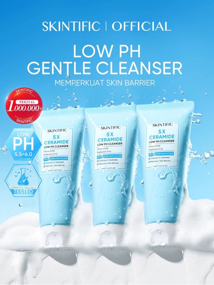 SKINTIFIC - 5X Ceramide Low pH Cleanser 80ml | Facial Wash Sabun Cuci Muka Acner Glowing - Skintific Official Store Mall