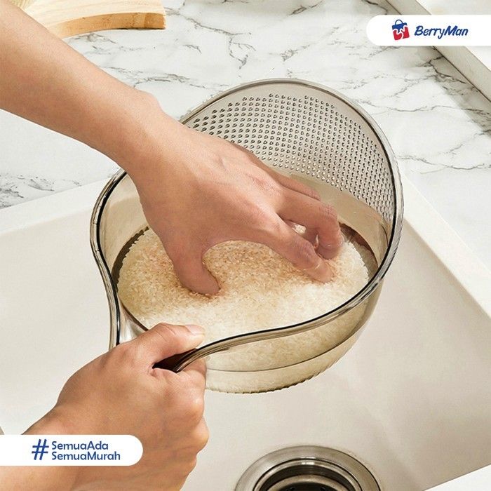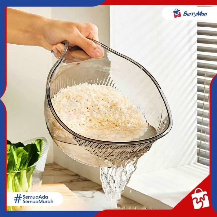 SARINGAN WADAH PENCUCI BERAS Plastik BPA Free Transparan Tempat Saringan Sayuran Serbaguna