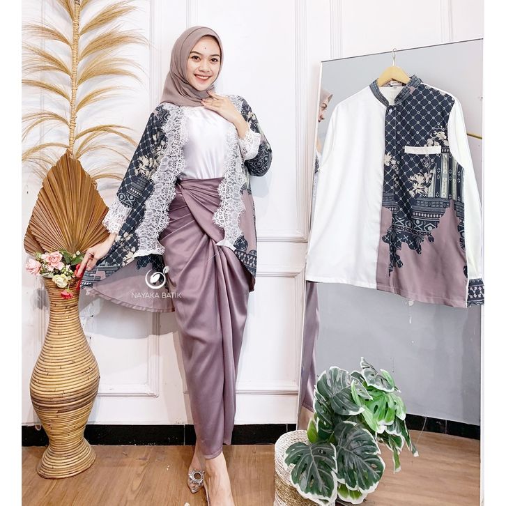 Baju Couple Pasangan Damaris One Set 3 in 1 Modern Wanita Baju Kondangan Kekinian Batik