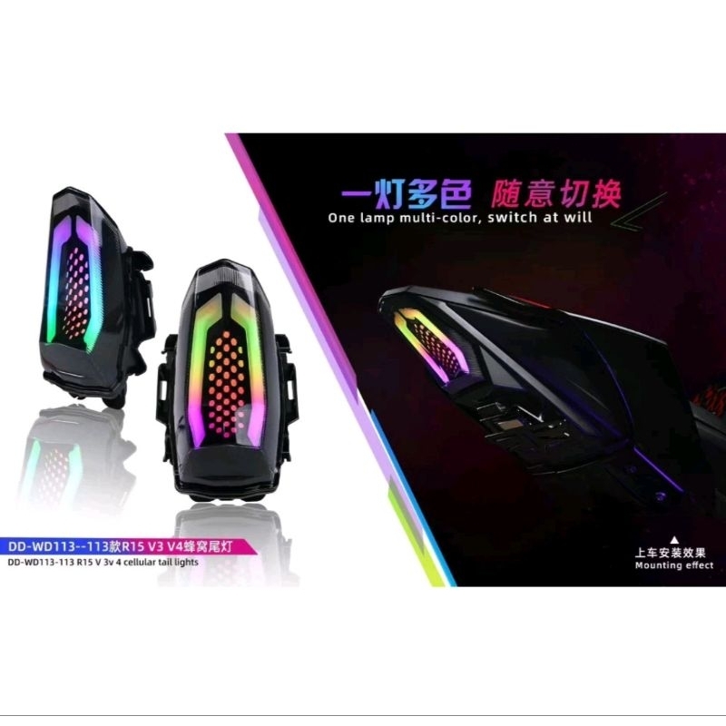 LAMPU BELAKANG R15 V3/V4 / STOP REM MAGNET RGB LED RUNNING MULTI COLOR UNIVERSAL