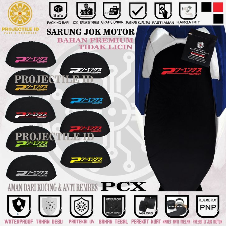 Sarung Jok Motor Pcx Japan Waterproof Pelindung Jok Honda Pcx Cover Jok Motor Bahan Premium Tebal Teks Pcx Kanji Jepang