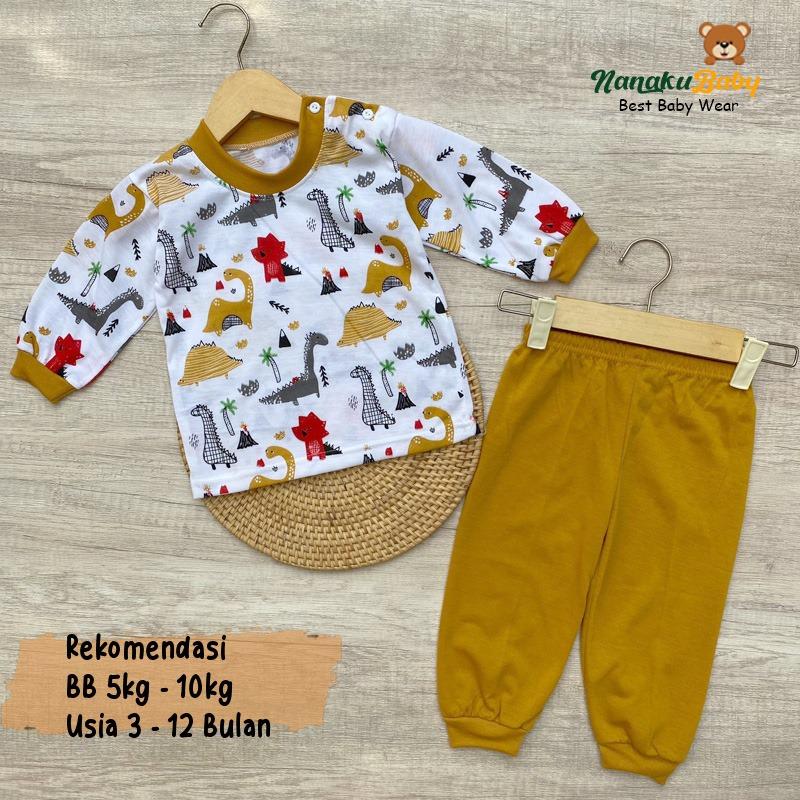 Nanaku Baby - Setelan Baju Bayi Setelan Piyama Bayi Usia 3-12 Bulan Setelan Lengan Panjang Kancing Pundak Motif Tirex