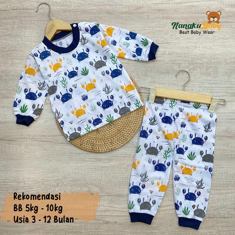 Nanaku Baby - Setelan Baju Tidur Bayi Piyama Bayi Lengan Panjang Kancing Pundak Motif Crab Usia 3-12 Bulan