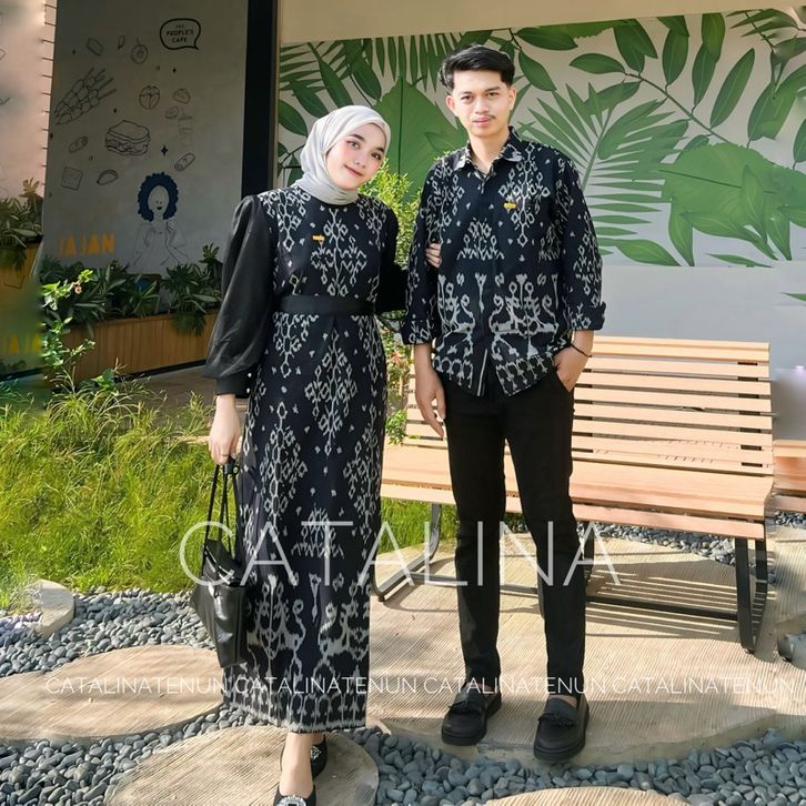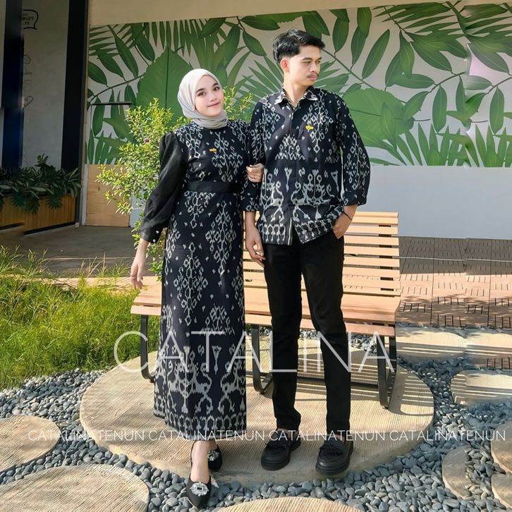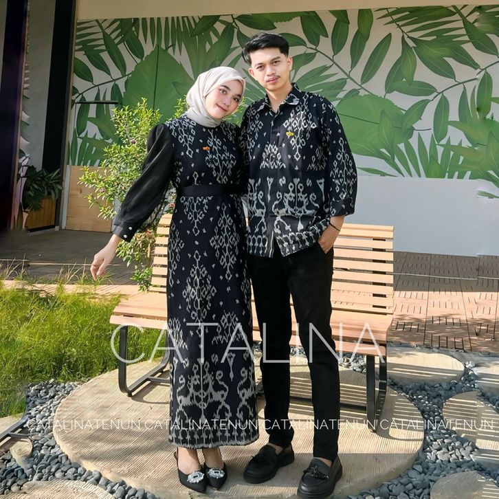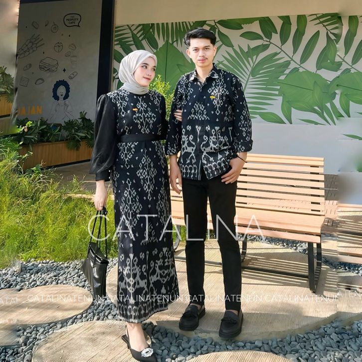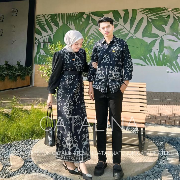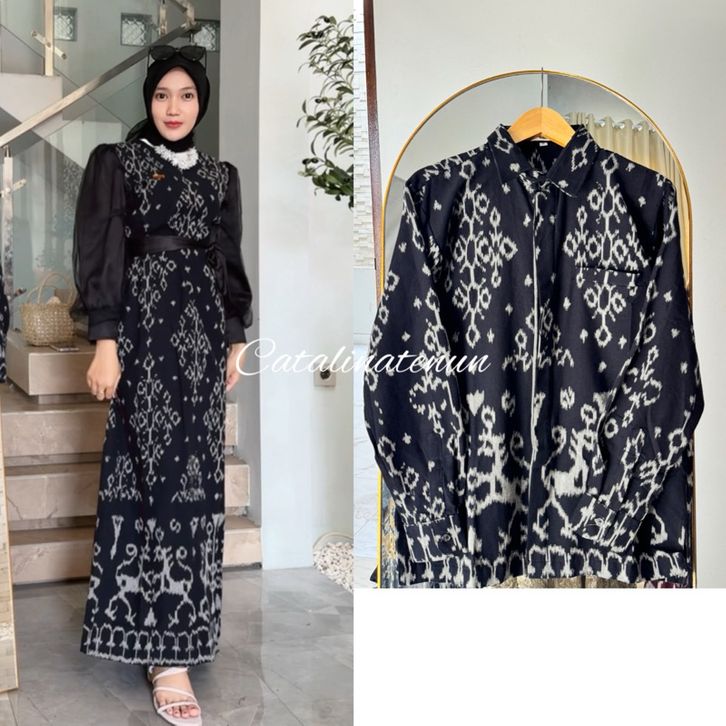 SET COUPLE TENUN FATMA BLACK SUMBA- BAJU COUPLE KONDANGAN - TENUN COUPLE SET - KEMEJA&GAMIS KONDANGAN - BAJU TENUN KELUA