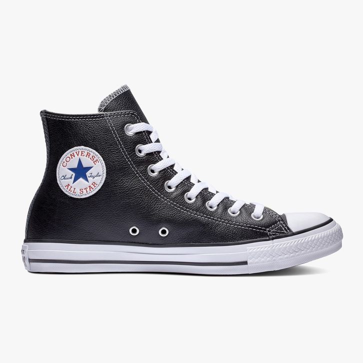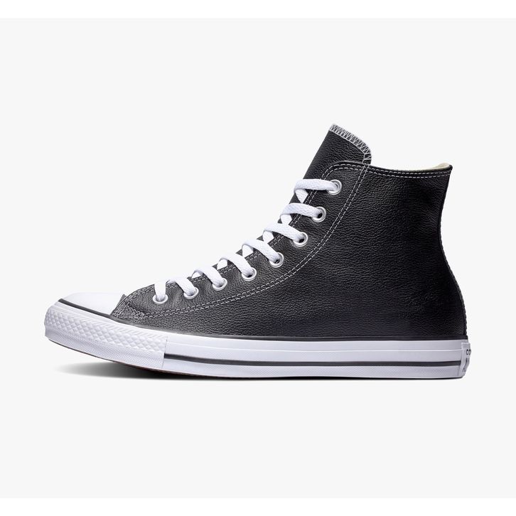 SEPATU PRIA CONVERSE CHUCK TAYLOR ALL STAR LEATHER HIGH BLACK WHITE ORIGINAL