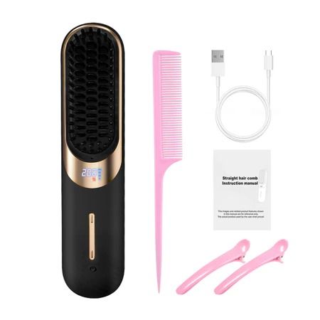 CkeyiN Sisir Pelurus Rambut Cordless Hair Straightener 4000mAh Rambut Listrik Nirkabel Hair Comb