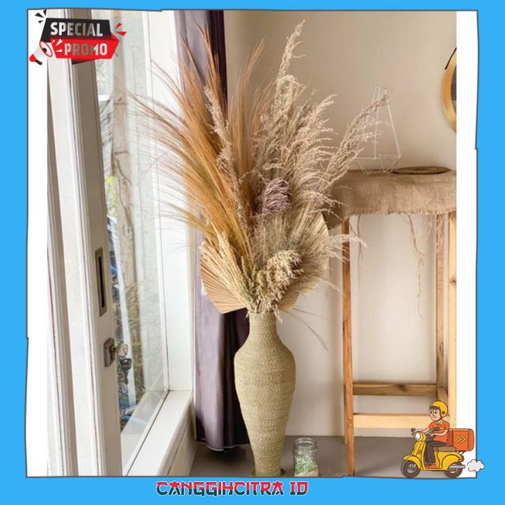 paket bunga kering pot mendong 70cm paket bunga kering pot mendong 70cm vas guci vas guci