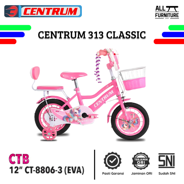 SEPEDA ANAK PEREMPUAN PMB KUROMI MN CENTRUM 313 CLASSIC WARNA 313 PINK 313 CREAM 315 PURPLE ADA KERANJANG