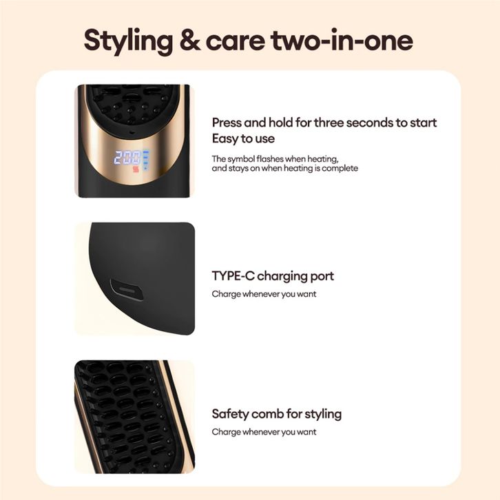 CkeyiN Sisir Pelurus Rambut Cordless Hair Straightener 4000mAh Rambut Listrik Nirkabel Hair Comb