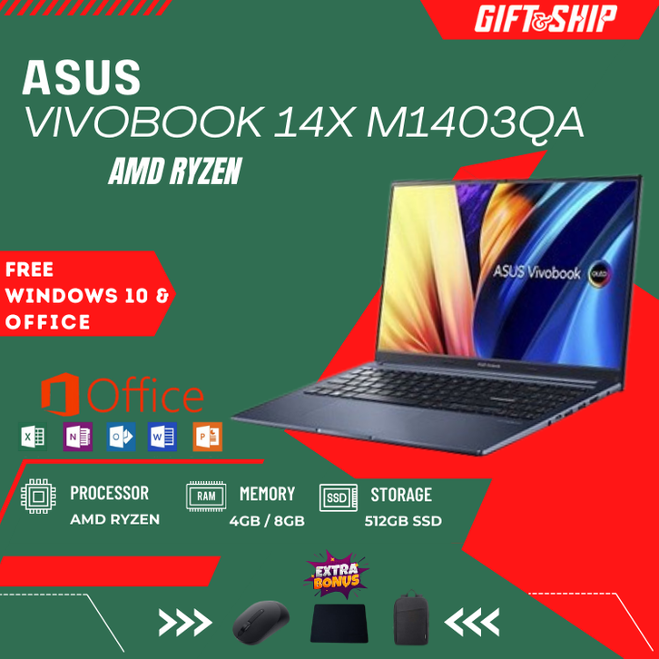 [PROMO] LAPTOP ASUS VIVOBOOK 14X M1403QA / RYZEN 5-5600H / RAM 8GB SSD 512GB / 14''FHD / FREE MOUSE DAN TAS