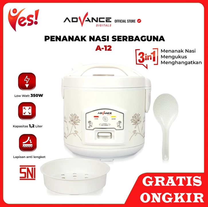 YES MEJIKOM KOSMOS / MAGICCOM / PENANAK NASA / PERALATAN DAPUR Advance A12 Rice Cooker / Magic Com 1.2 Liter 3 in 1 Bonu