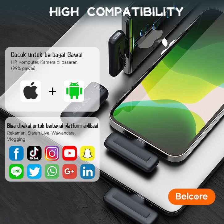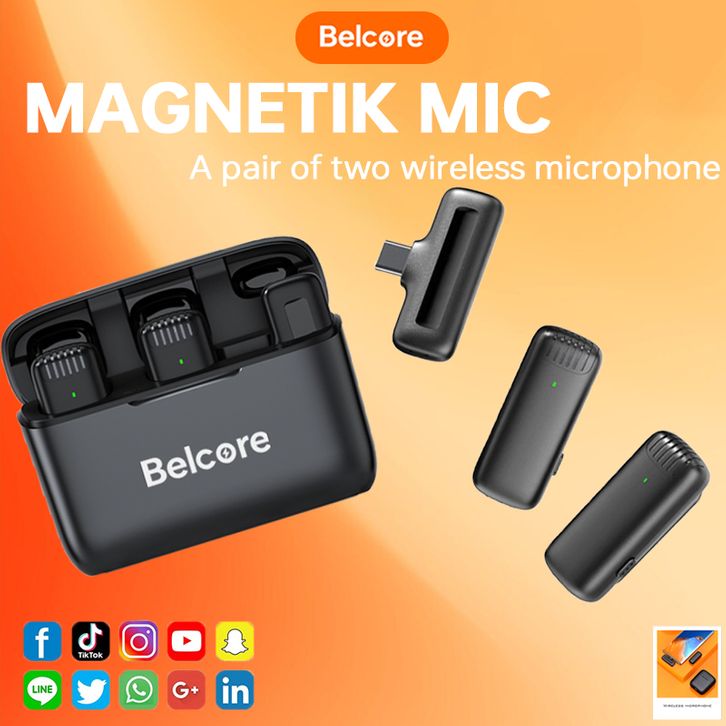 Belcore Wireless Dual Lavalier Microphone Plug & Play Lapel Mic with Charging Case Mikrofon for TikTok YouTube Facebook