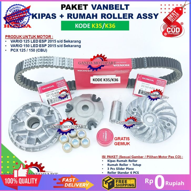 Paket Vanbelt Kipas Rumah Roller Set Vario 125 fi Tekno KZR Vario 125 150 Led Esp K35 K36