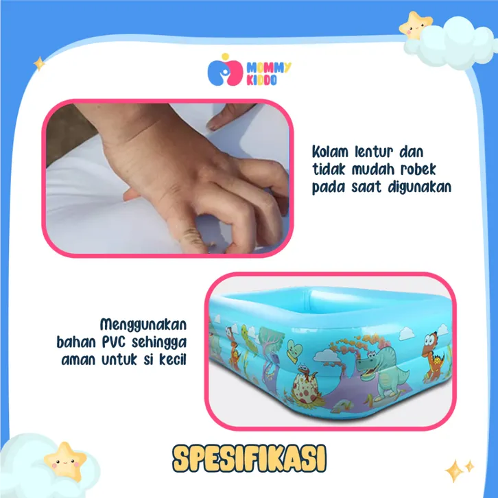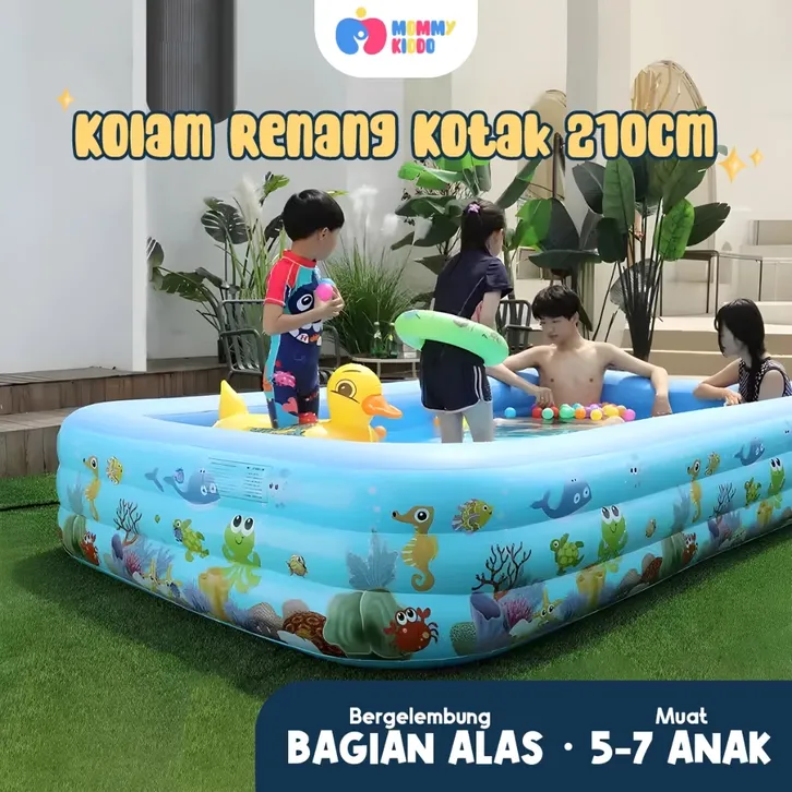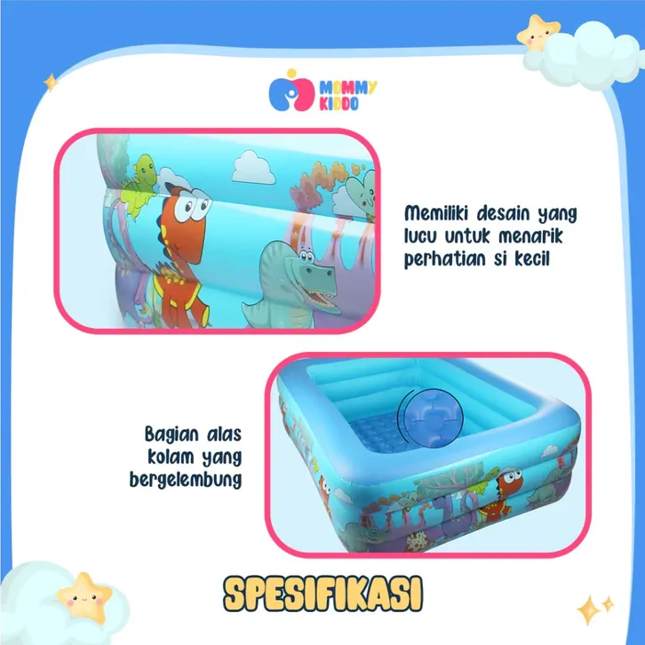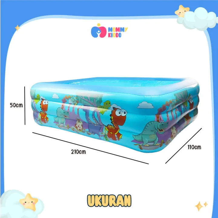 MOMMYKIDDO Kolam Renang Dino Jumbo Kolam Renang Anak Kotak Alas Bergelembung 210 CM