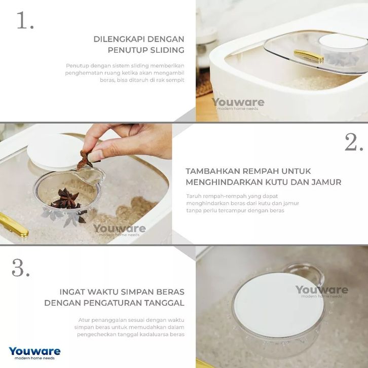 Dispenser / Tempat Penyimpanan Beras Aesthethic Anti Kutu Kapasitas 5-10KG