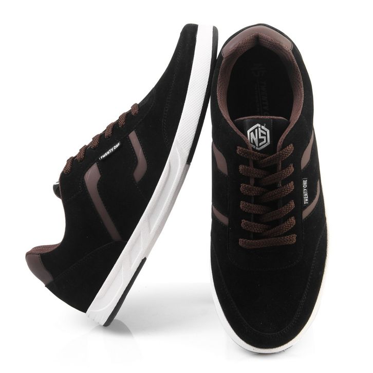 Sepatu Pria Suede Hitam Kombinasi Coklat Kopi Keren Kekinian