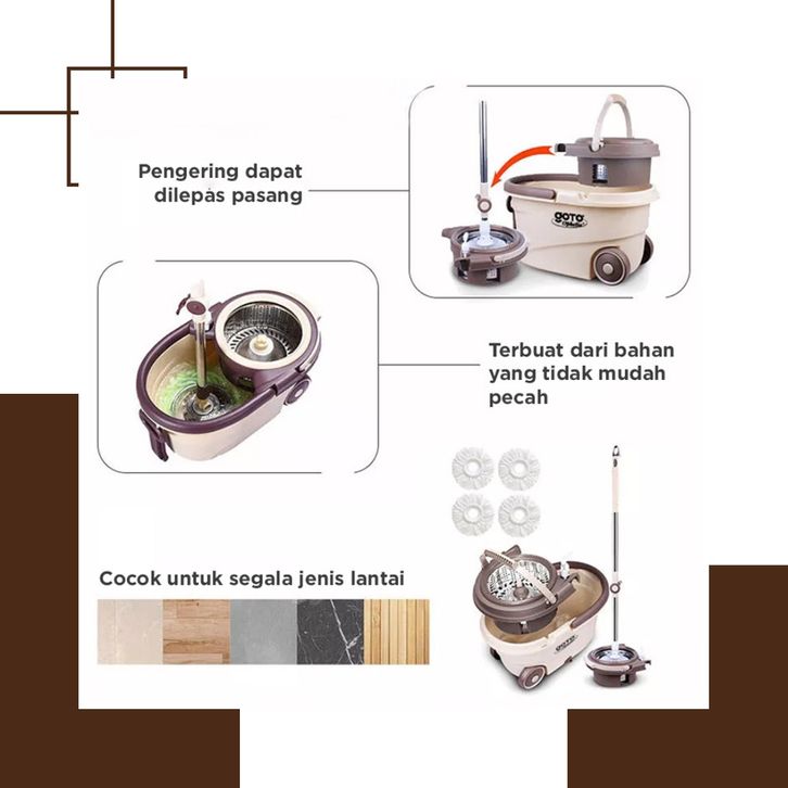 Alat Pembersih Lantai Pel Pelan Set Putar Goto Ophelia Spin Mop Ultra