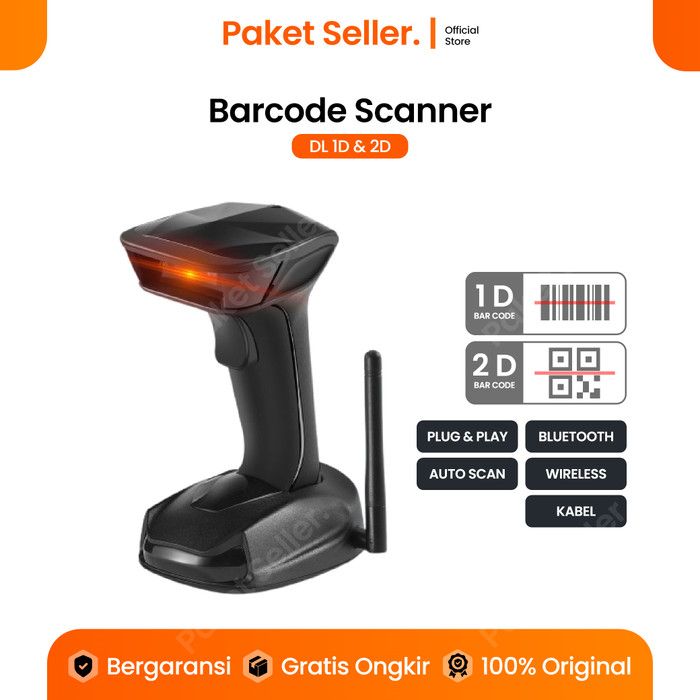 Barcode Scanner Bluetooth 1D 2D QR Code Wireless Autoscan Jarak Jauh untuk Gudang & Supermarket Tahan Lama