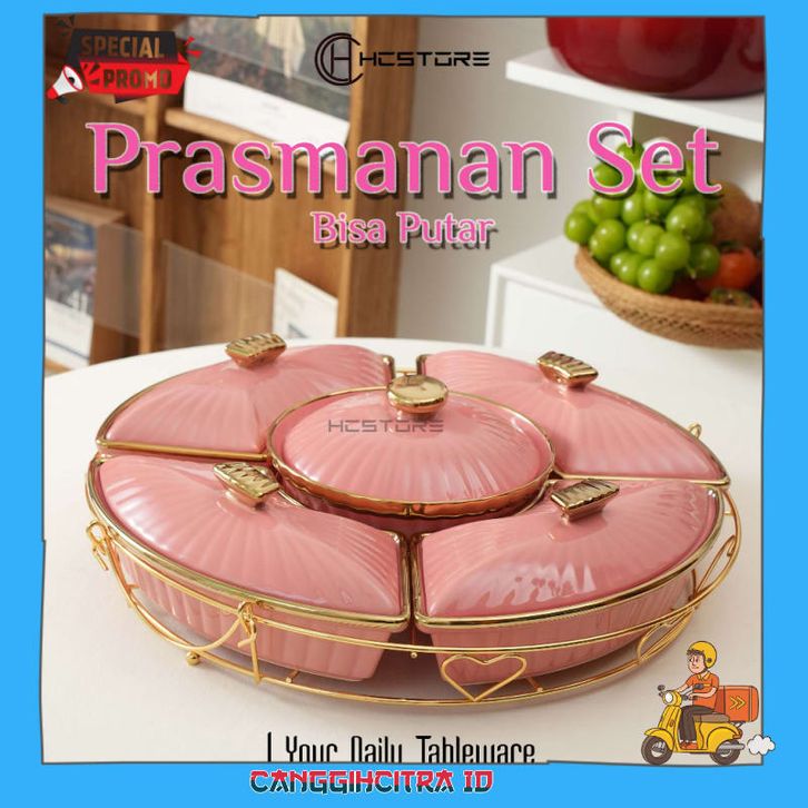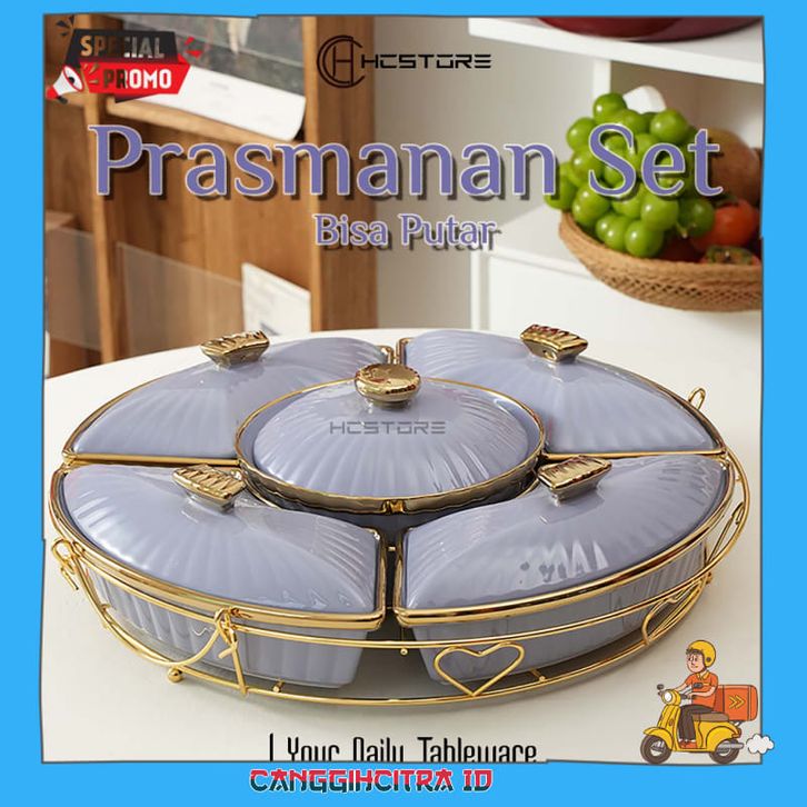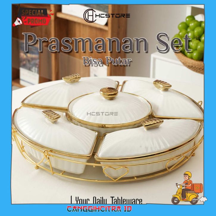 Set Prasmanan Besar Putar Keramik isi 5Set Prasmanan Besar Putar Kera item dengan Rak Gold Mewah Anti Luntur Anti Rontok