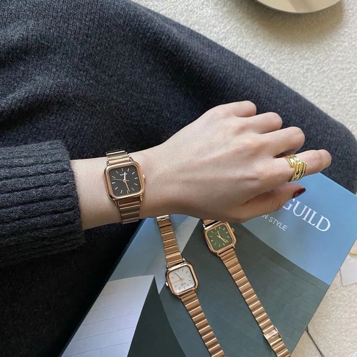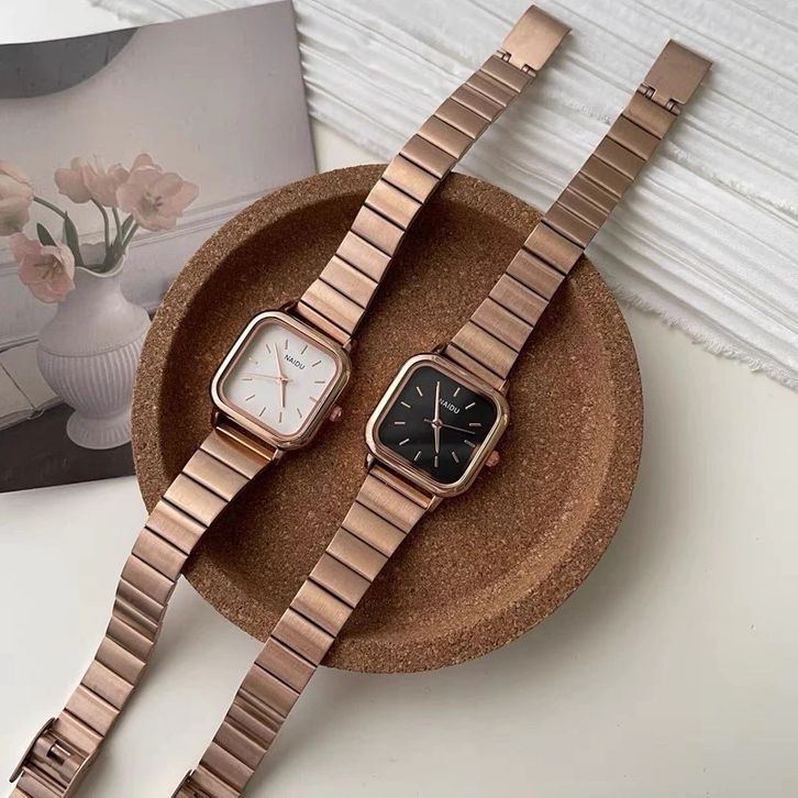 am Tangan Wanita Kuarsa Jam Tangan Tali Baja Gaya Kasual Vintage Hitam Putih (Kotak Gratis) ZZ05