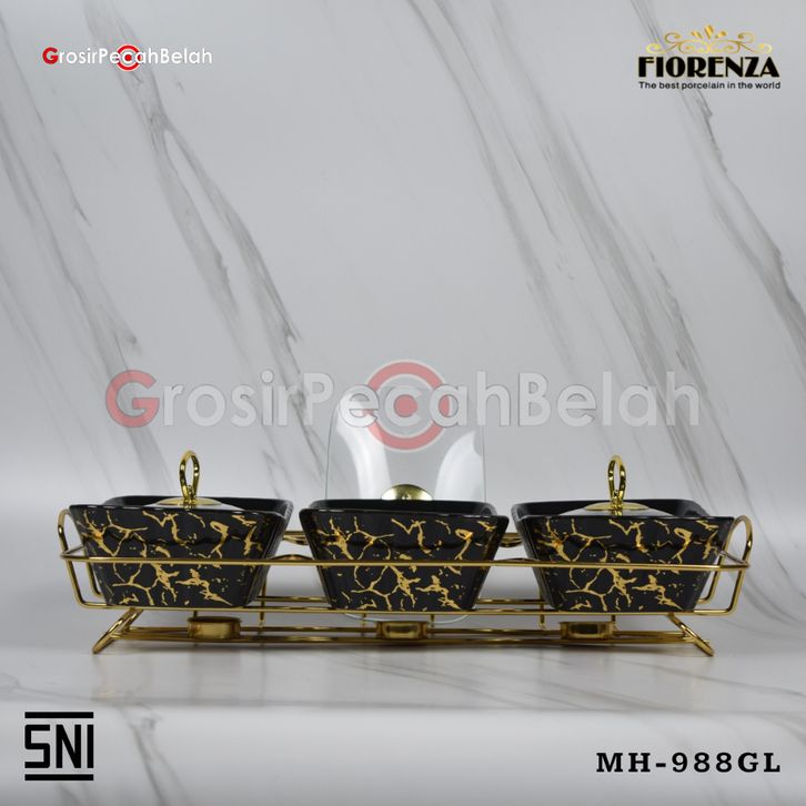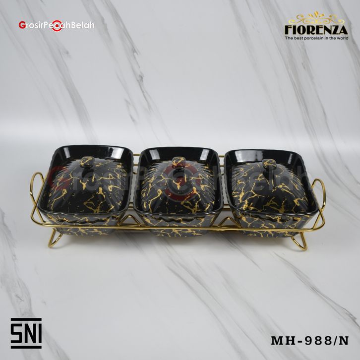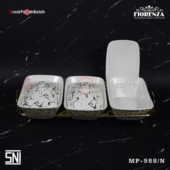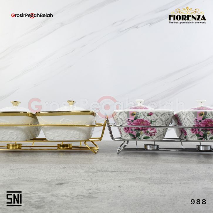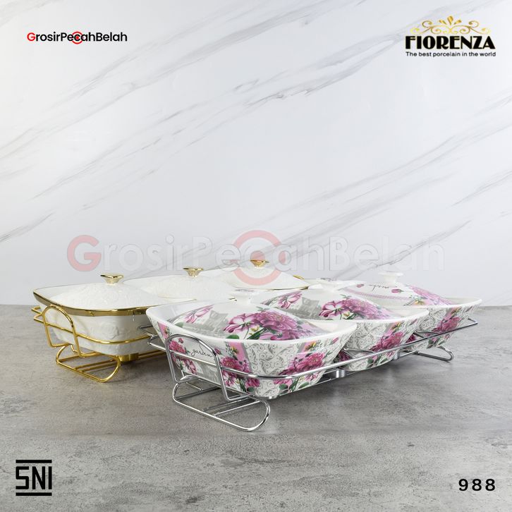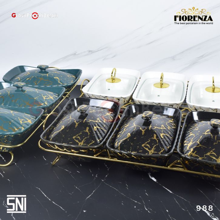 Wadah Saji Penghangat Casserole Prasmanan Basi Set Kitchenware | Motif Marble Emboss Bunga 988