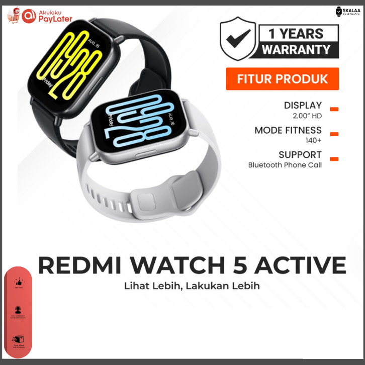 Smartwatch Xiaomi Redmi Watch 5 Active 2 Inch 140+ Jam Tangan Smart Watch Mode Olahraga Tahan Air 5ATM Baterai Tahan 18
