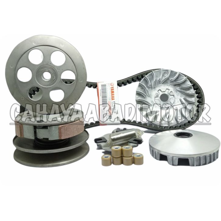 PAKET CVT LENGKAP MIO SPORTY/SMILE/SOUL KARBU VANBELT+RUMAH ROLLER SET+KIPAS+PULLY ASSY