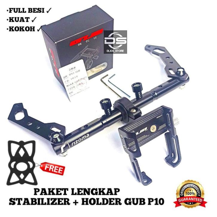Holder GUB P10 paket lengkap + dudukan stabilizer spion Motor Nmax, scopy, genio DLL