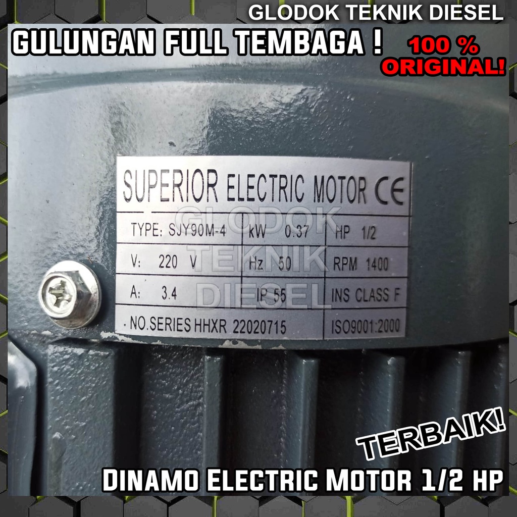 Dinamo Electric Motor 1/2 HP 1 Phase 0.5 HP 1400 RPM Gulungan Full Tembaga ORIGINAL TERBAIK