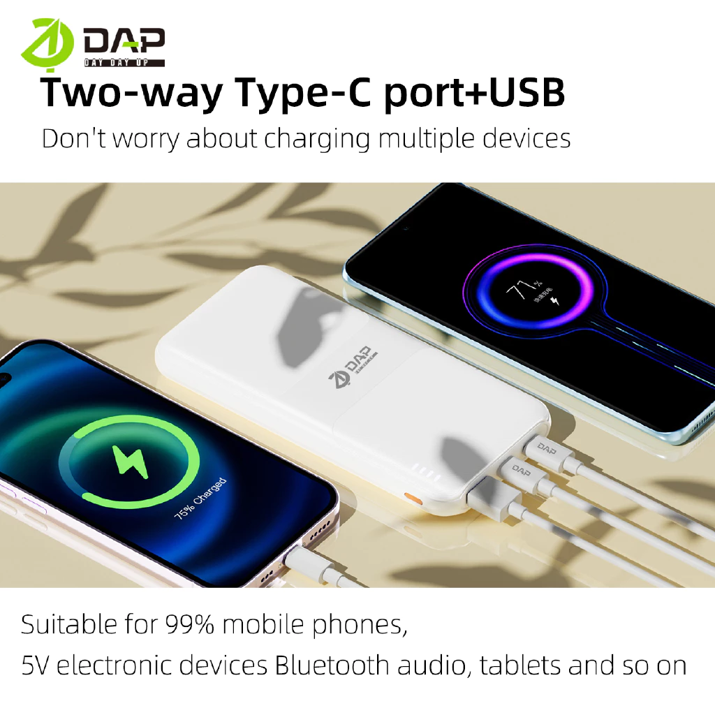 Powerbank DAP D-PB105 10.000mAh 2.1A Input Micro Type C & Output USB Type C Mutifungsi - Garansi 1 Tahu