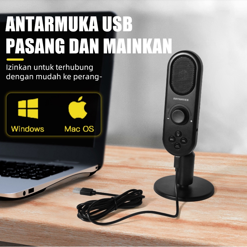 RAYHAYES MIKROFON RGB CONDENSER MICROPHONE YOUTUBER PC LAPTOP REKAMAN PODCASTING LIVESTREAM MIC