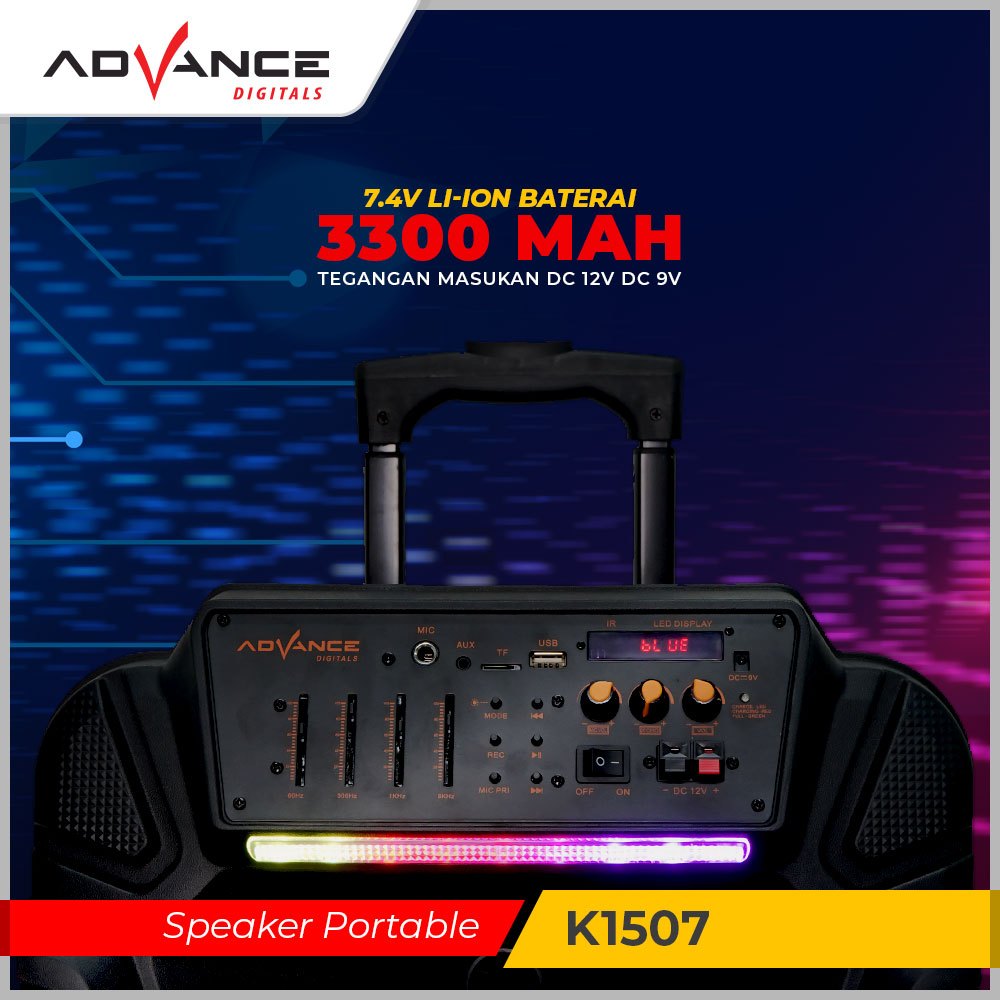 Advance K-1507 Speaker Karaoke Meeting Bluetooth Speaker 15 inch Free 2 Mic Wireless