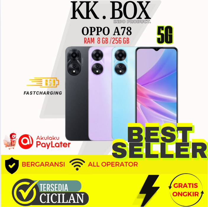 HP smartphone OPPO A78 JARINGAN 5G RAM 8/256GB FASTCHARGING 33WATT FULLSET BERGARANSI 1TAHUN TERMURAH