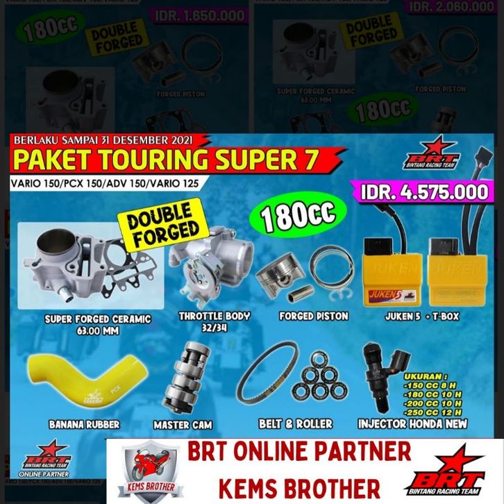 Paket Bore Up PAKET BRT BOREUP 180cc VARIO125 VARIO 150 PCX 150 ADV 150 TOURING SUPER 7 Blok Ceramic 63mm, TB VELO, NO
