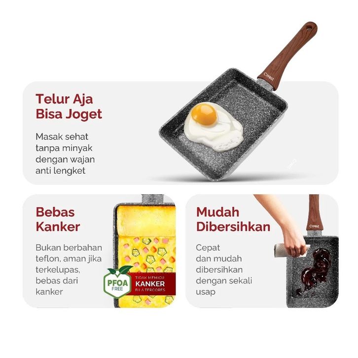 Cypruz Tamagoyaki Panci Wajan Penggorengan Telur Anti Lengket Grey Marble Series