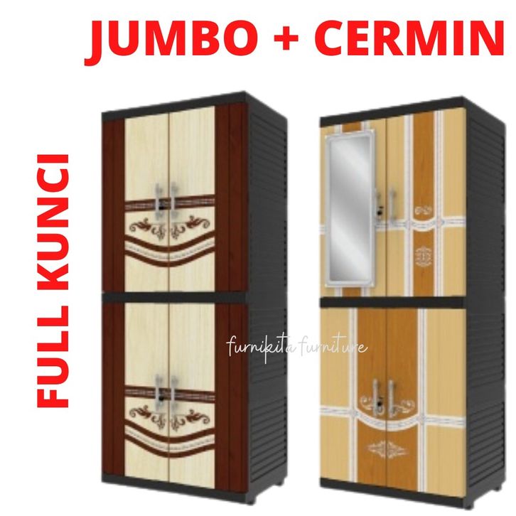JUMBO LEMARI PAKAIAN PLASTIK NAIBA MSC FIT CERMIN SUSUN 4 MODERN - FULL KUNCI