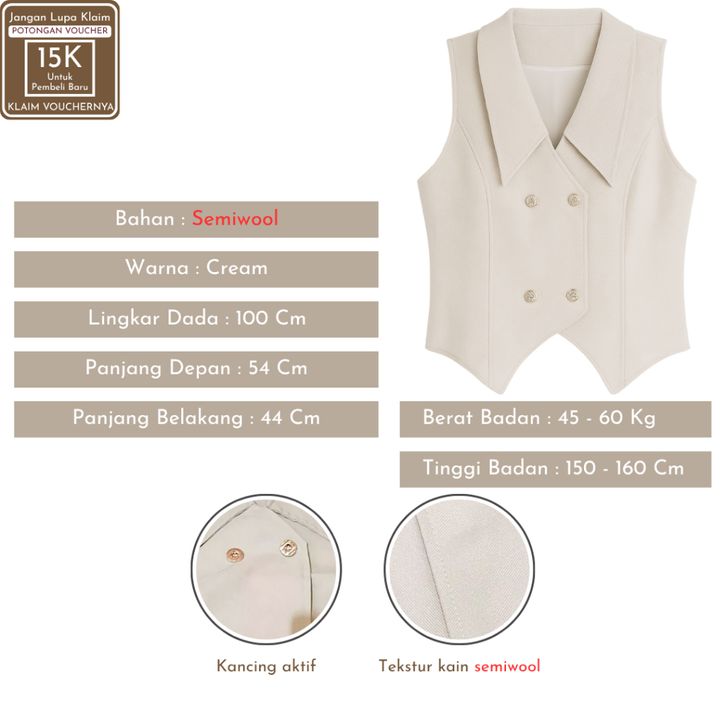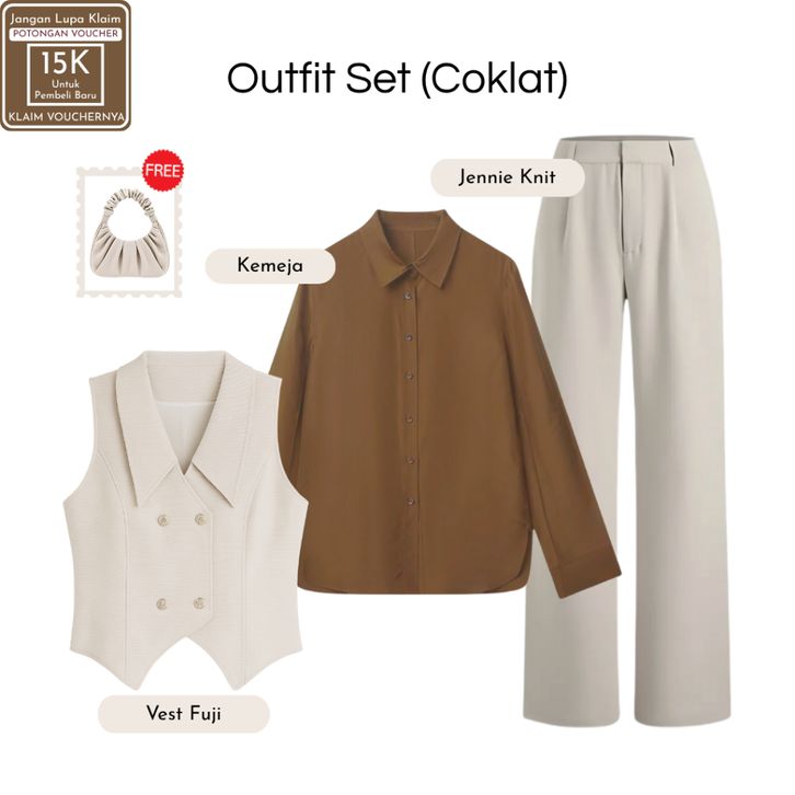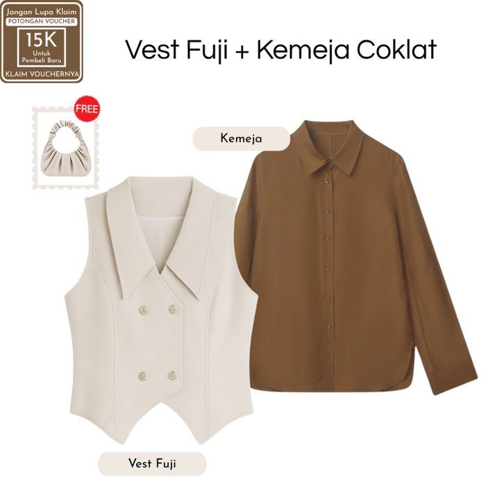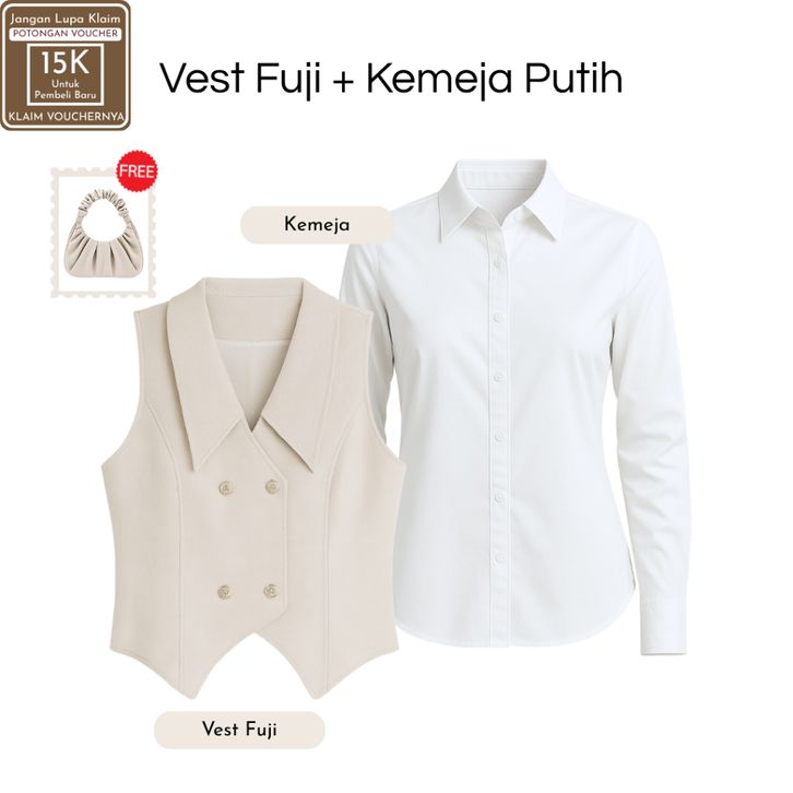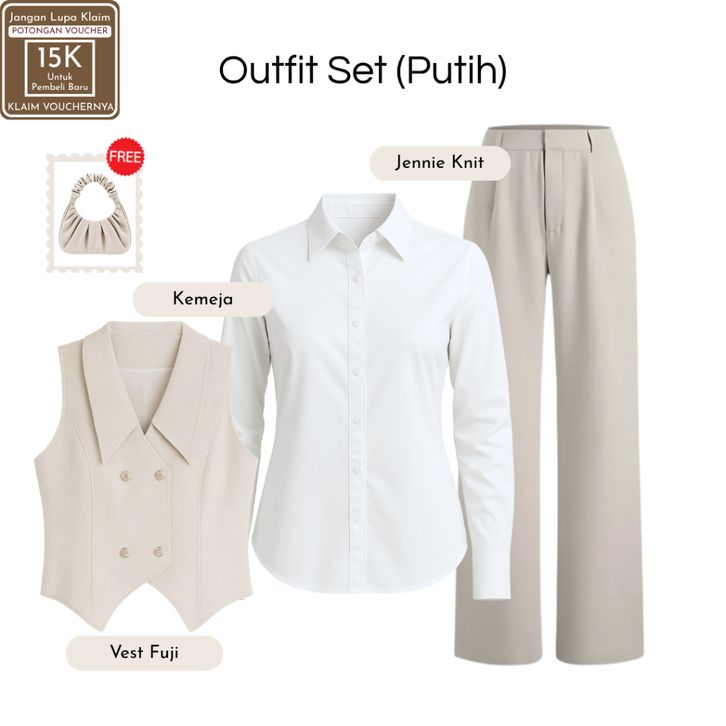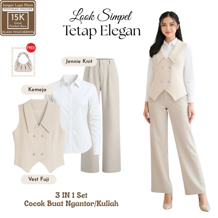 Setelan Wanita Kekinian ( Vest Fuji Cream + Jennie Knit + Kemeja Putih ) OOTD Ngampus Elegant |SB112