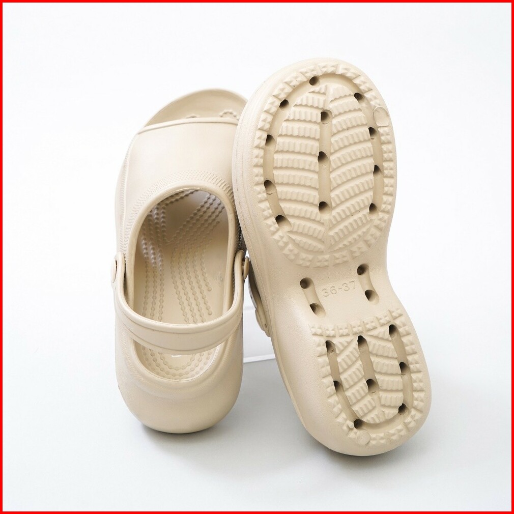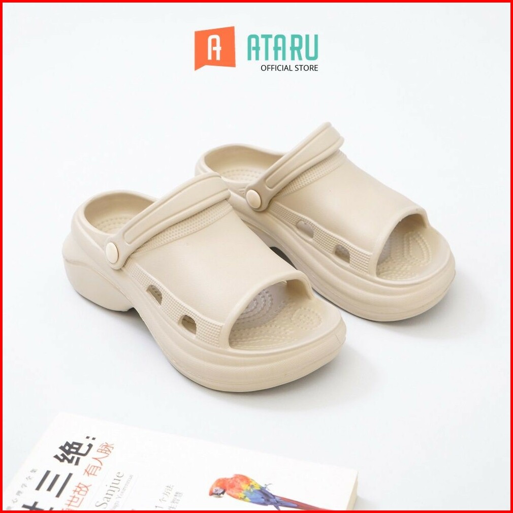 Ataru Ukuran 38-39 Sandal Wanita Clogs Wedges Sling Back - Krem Sendal Cewek Alas Kaki Slide Wanita Women Fashion