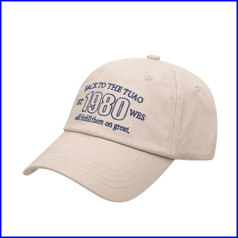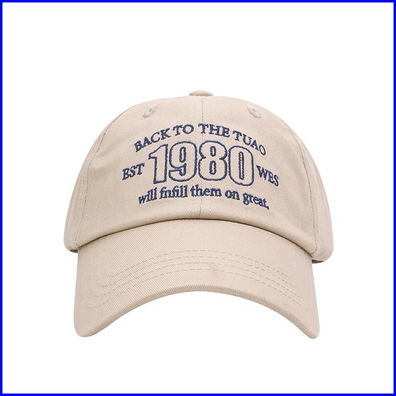 Ohsome Topi Baseball Teks Amerika Retro Putih Khaki Mostorhata