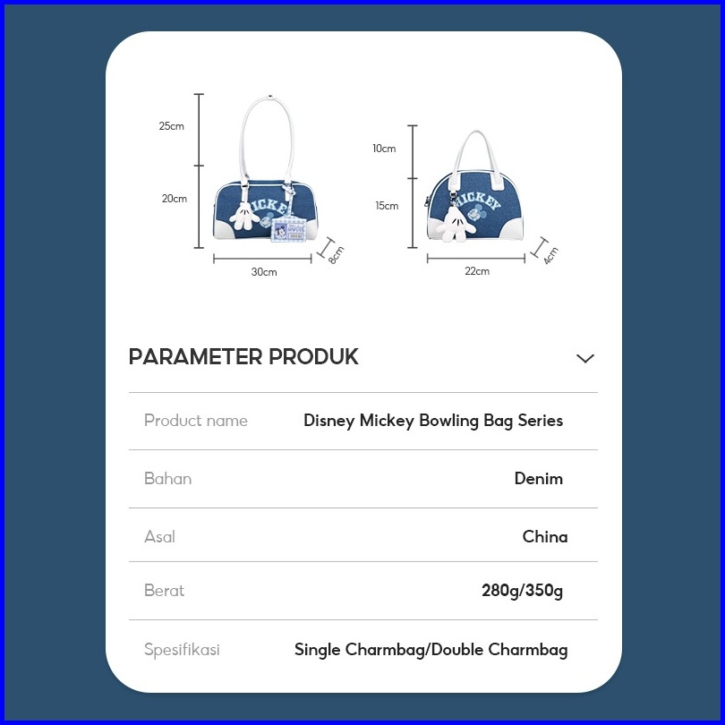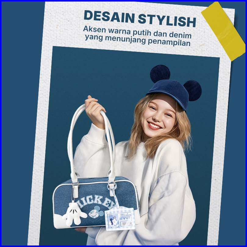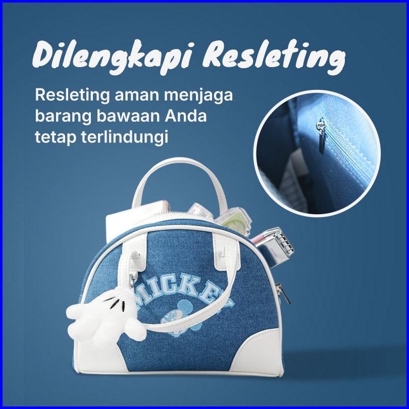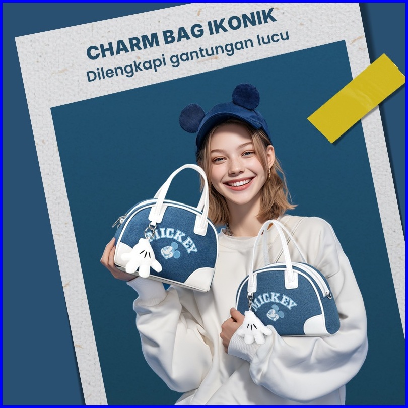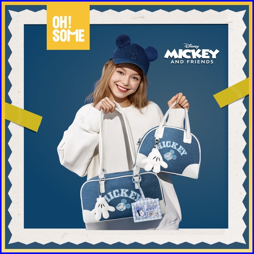 Ohsome X Disney- Egradable Mickey Mouse Deni Bowlingcrossbody Bag Tas Selempang Denim Karakater