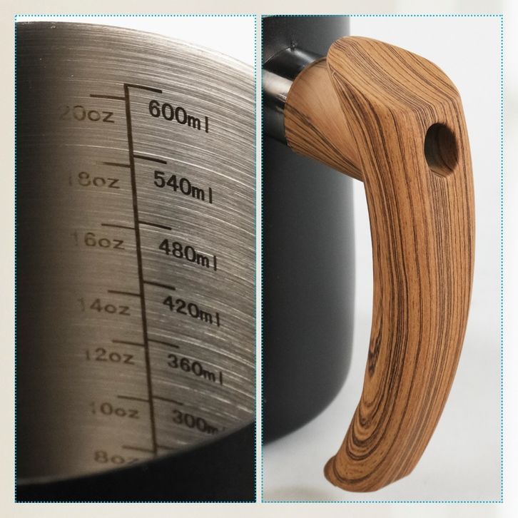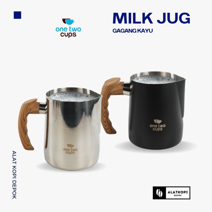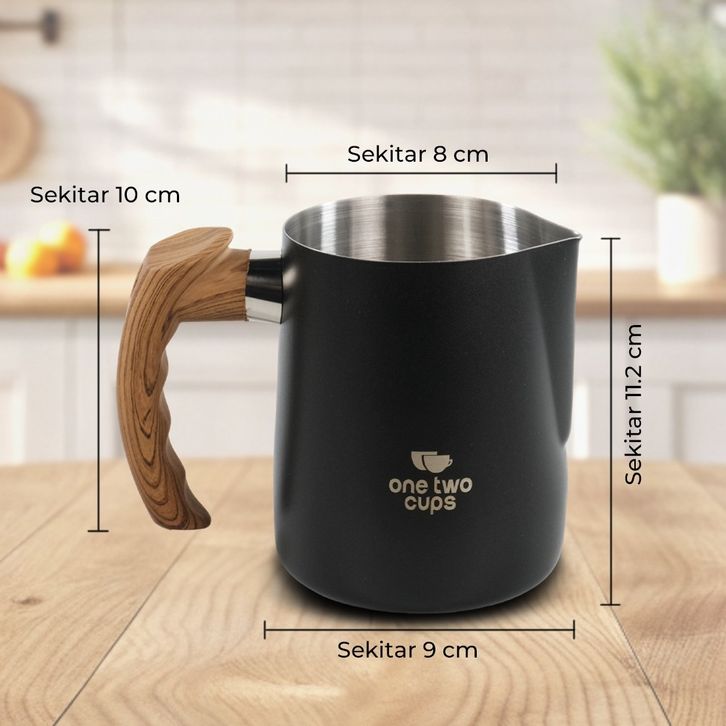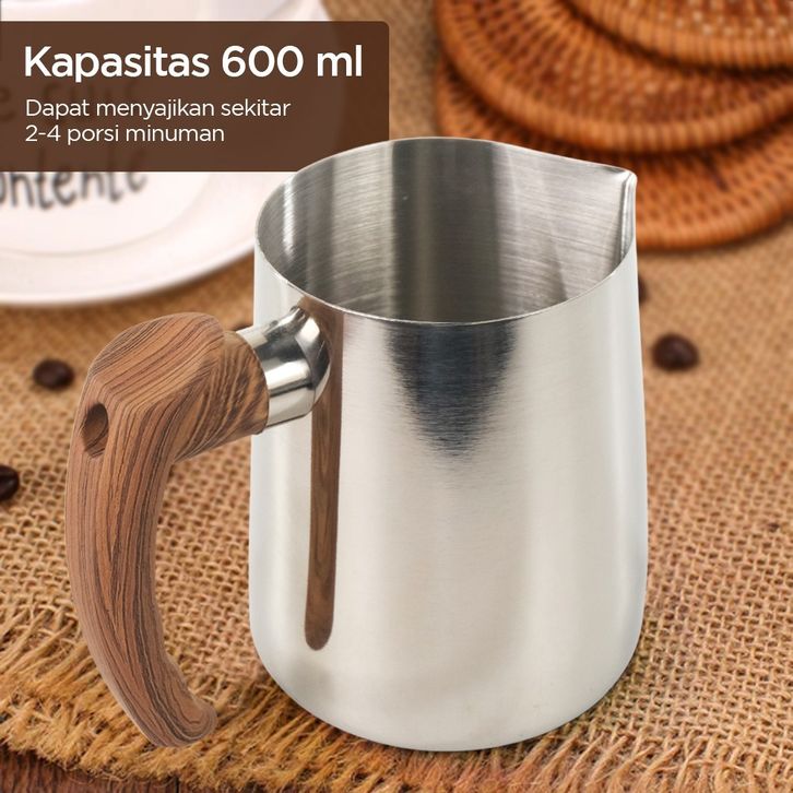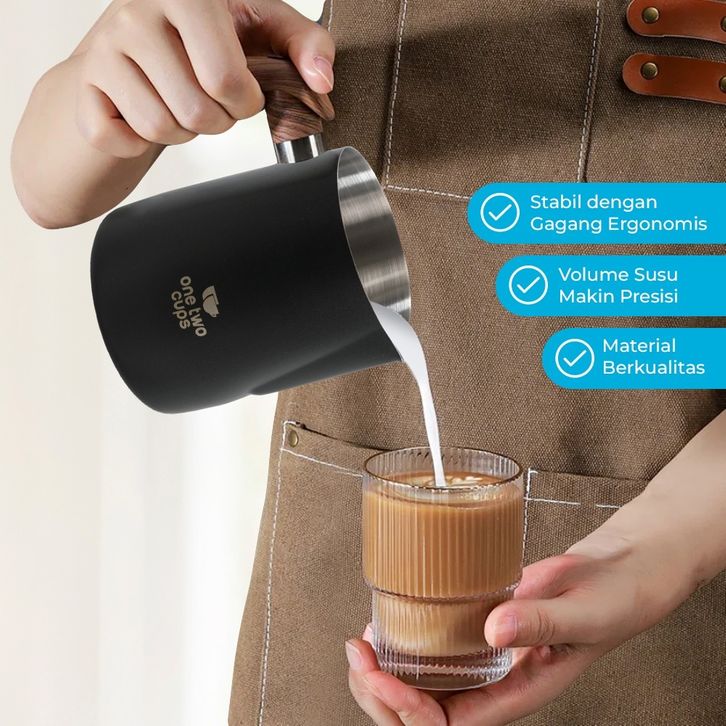 One Two Cups Gelas Milk Jug Latte Art Stainless Steel With Scale 600ml - Gagang Kayu Aesthetic PROMO TERMURAH