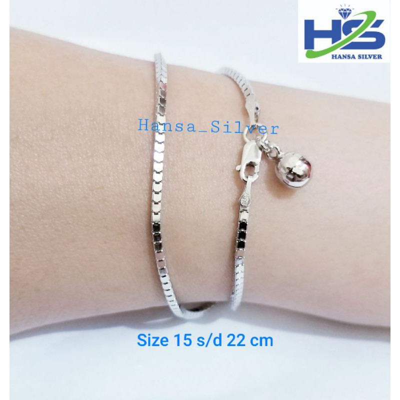Gelang Perak Asli Silver 925 Lapis Ems Putih Model Milano Kaca - Gelangg Perak Wanita Anti Karat