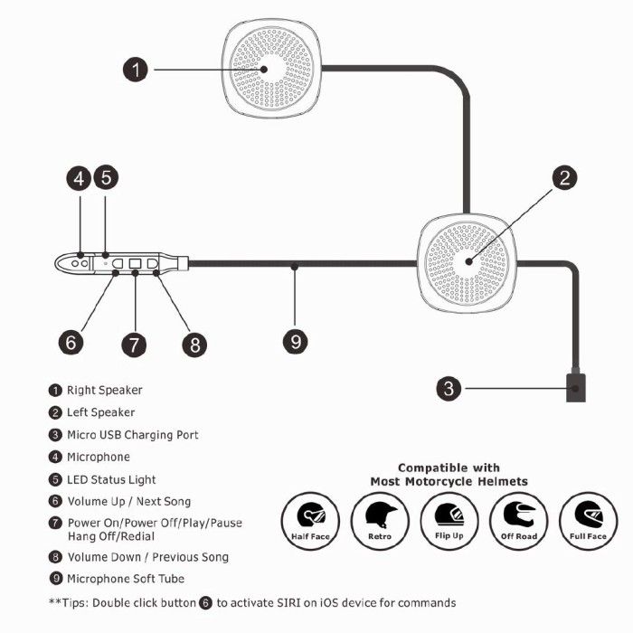 T2 Wireless Bluetooth 5.0 Motorcycle Helmet Headset Stereo Speaker BEST PRODUK