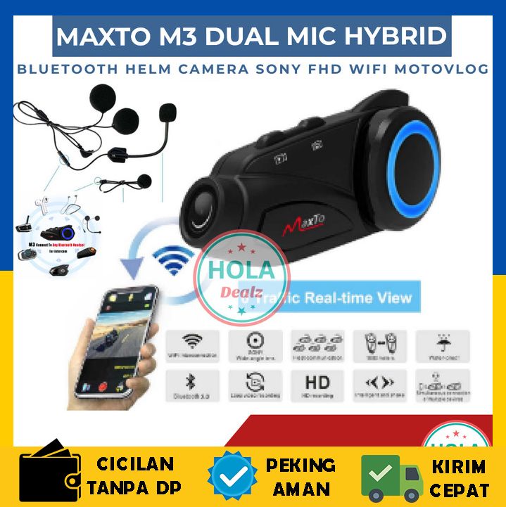 NEW MAXTO M3 DUAL MIC HYBRID INTERCOM CAMERA SONY FHD BLUETOOTH HELM BEST PRODUK