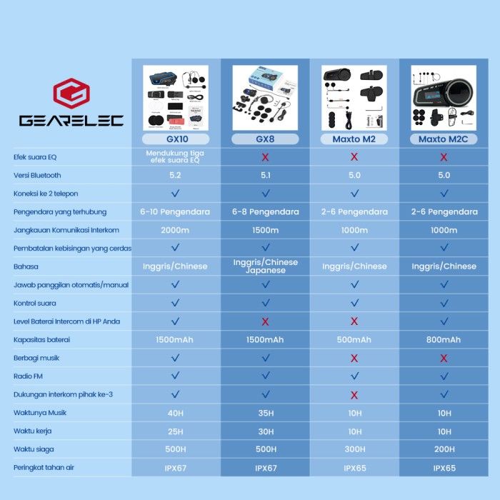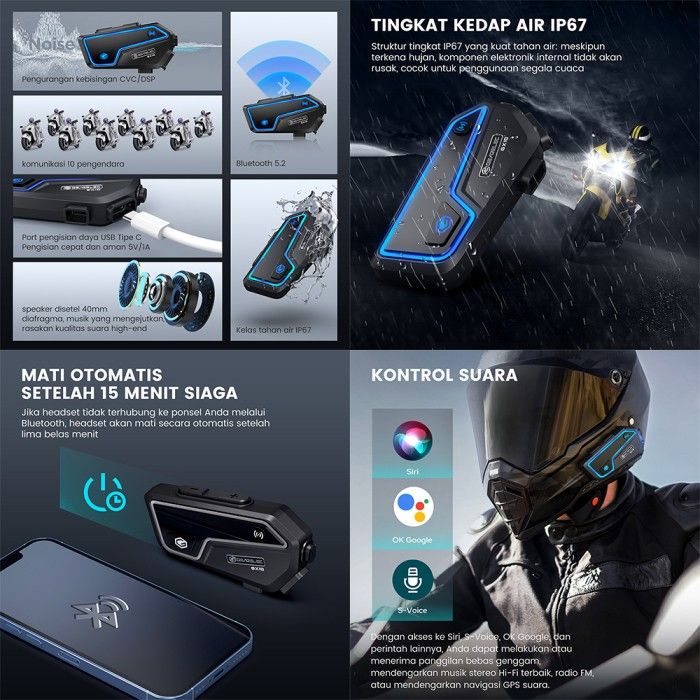 GEARELEC GX10 Motor Helm Bluetooth 5.2 EQ Efek Suara Intercom Headset BEST PRODUK