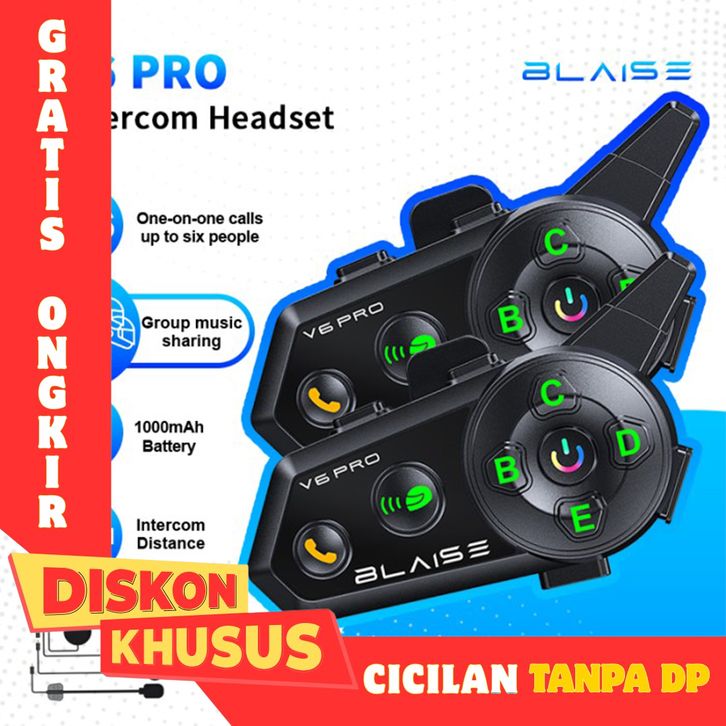 BLAISE V6 Pro Motorcycle Bluetooth Intercom Helm 6 Rider Helmet - V6 PRO - 1 PCS BEST PRODUK