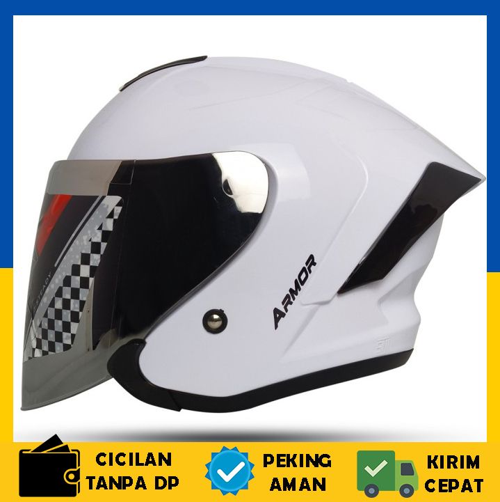 Helm ALV Ultron New Half Face Single Visor SNI - JS ARMOR WHITE, XL BEST PRODUK