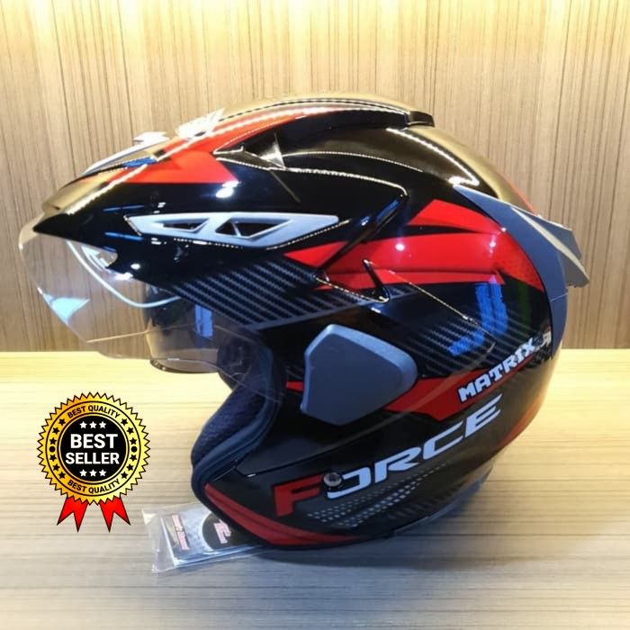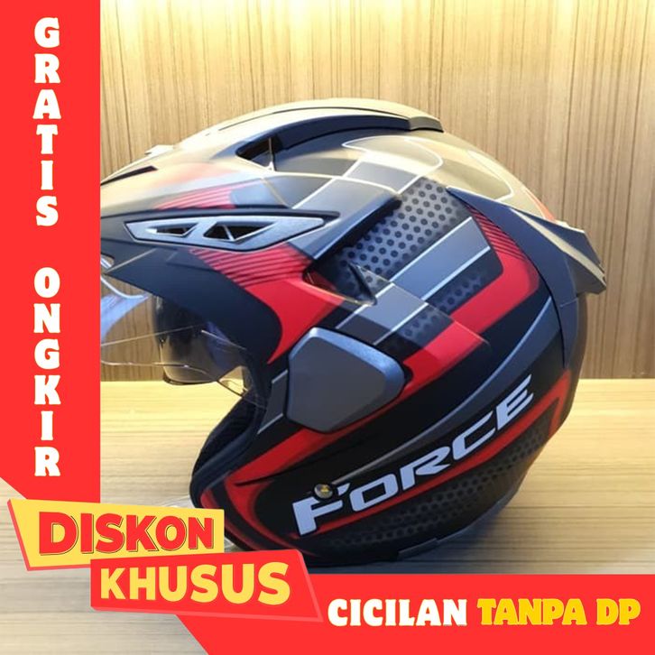 Helm Half Face Double Visor SNI Pria Dewasa FORCE Hyper-X Size M L XL - CassanovaRedBkD, L BEST PRODUK